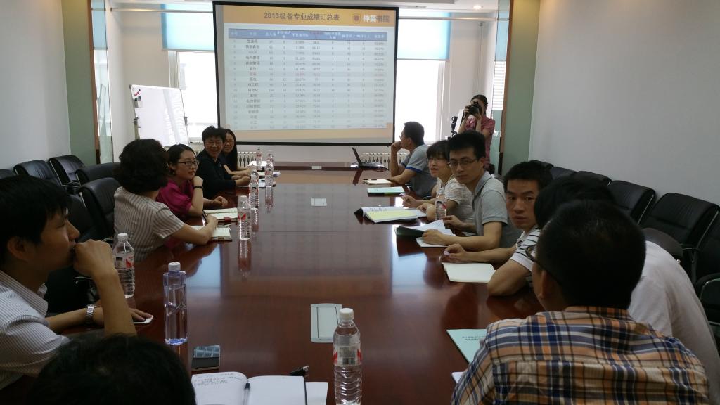 徐慧老师首先就我院本科生2014-2015学年第一学期总体学习成绩情况、2014年度就业情况以及获奖和参加社会实践等方面做了整体介绍,针对不同专业年级提出了相应的工作建议。然后各年级辅导员针对上学期各个班级的学生学习情况,如不及格率、平均成绩、需要重点关注的学生进行了详细的分析。徐慧老师提出,必赢76net线路学生在创新实践方面成绩斐然,希望今后在本科生学业提升、人才培养、就业工作、提升学生专业兴趣和新生养成教育等方面与书院多合作。李云副院长要求各位班主任进一步配合书院工作,合力帮扶重点关注学生,在班级中营造良好的学风。学院各专业要加强对低年级的专业教育,关注毕业班学生的就业情况,协助解决个别本科生的就业问题。最后张早校书记提出,书院和学院应加强联系,共同关注学生成长,提高本科生到课率。对成绩出现不及格的学生及时进行心理辅导,注重家校沟通。