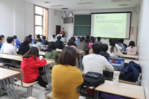 新加坡南洋理工大学张华教授于10月20日作了题为“Crystal Phase-Controlled Synthesis of Novel Noble MetalNanomaterials”首场报告,他向到场师生介绍了课题组近年来在超薄二维纳米材料的设计与合成方面取得的系列研究成果(如石墨烯、金属硫化物、MOF等),并着重介绍了通过调控晶相组成来设计新型单金属及复合金属纳米片的独特思路。他从方法学的角度出发,用自己切身的感悟为科研学者进行科学研究指点迷津,整场报告会张华教授谈笑风生,演讲内容运用自如,深入浅出,不断出现赞赏钦佩的热烈掌声。报告会后,张华教授就部分科研问题与在座师生进行了深入而友好的讨论和交流。