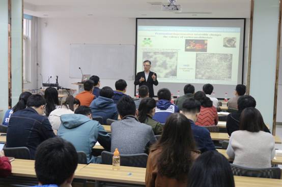 北京大学张锦教授和中国科学技术大学俞书宏教授于10月22日分别作了题为《Chirality-Predicted Growth of Horizontal Carbon Nanotubes Array with Designed Catalysts》、《无机材料的仿生合成、组装及应用》的第二场报告,张锦教授从碳纳米管的生长机理及其碳纳米管研究面临的主要问题着手,深入浅出的介绍了多种想法奇特的催化剂制备手段,尤其在利用“特洛伊”催化剂调控单壁碳纳米管手性方面的工作开阔了大家的视野,在场的师生深受启发。俞书宏教授从利用分子模板诱导仿生合成、纳米结构单元可控合成与组装以及宏观尺度纳米组装体仿生制备与功能化等方面阐述了近年来课题组所取得系列创新成果,并详解了纳米材料有序“组装”带来的一些神奇效应。报告会现场互动气氛热烈,参会师生踊跃提问,张教授和俞教授耐心细致的解答博得阵阵掌声。