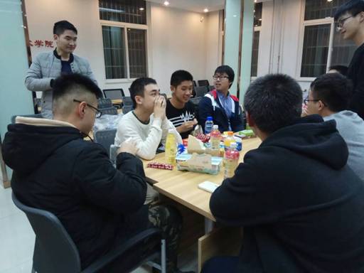 班主任与同学们亲切交谈后,提出在期末时期努力奋战的目标,大家也一致赞同,纷纷下定决心,静心凝神,争取更好的成绩。大家你一言我一语,分享复习经验,为期末复习方法献言建策。 学习委员景智炜对同学们的讨论做出了总结,为大家拟了一份期末复习的计划:着重复习电工电子技术导论,有机化学,大学物理,概率论这四门课程,每天都要安排两小时左右进行从头梳理,直至十二月末;一月份考试随着考试顺序再对各科进行冲刺复习。 之后大家对近期生活做了交流,衣食住行各方面均有涉及,大家一致认为近期天气寒冷,需要防寒保暖,预防感冒。交流完毕后,大家一起分组进行了轻松愉快的团队游戏,有说有笑,获胜的小组获得了零食等奖励,大家共同分享,大快朵颐。