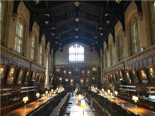 今天的第二站,大家走进七百年历史的牛津大学基督教会学院(Christ ChurchCollege)。牛津大学最大的学院,近代16位首相、爱因斯坦、《爱丽丝漫游仙境》的作者卡洛尔都曾经在这个学院入住。满墙的著名校友,满墙的纪念话语无不让人们感受到学院仿佛是充满思念的母亲,七百年来每一位学子都在心上,都是掌上明珠。文化气质点滴滋养,润物无声。交大书院的老师们值得来看看,这里是最早实行书院制的地方。同时,这里还因拍摄《哈利波特》在全球卓有名气。