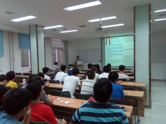 屈龙、蔡元汗两位老师在中南大学向学生介绍学院情况