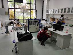 搬迁过程中,由于团队长期从事于太阳能光-电-热利用和微纳尺度流动与传热方面的研究,所用设备属于易碎设备,并且大多数设备都是用电的,老师们都事无巨细相互殷殷叮嘱,一定要在拆卸组装过程中保证零部件的完整无缺,一个螺丝帽都不能少,少一个可能影响实验安装。在拆卸过程中,各种管线和零配件得先拆下来,还要充分考虑设备的大小、尺寸、重量,再进行贴标签,再放入打包袋、打包箱归拢,必须要保证到创新港后能够轻松安装。每位参与的老师和学生都从“只懂使用”的管理员变成了专业的“工程师”。