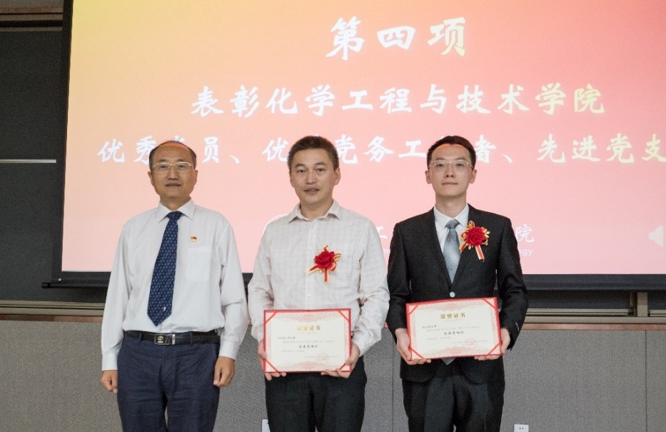 接着学院党委副书记陶磊宣读《必赢76net线路两优一先表彰决定》。分党委书记张早校、党委委员杨贵东、党委委员陈飞分别为获得先进党支部、优秀党务工作者、优秀党员颁发证书。