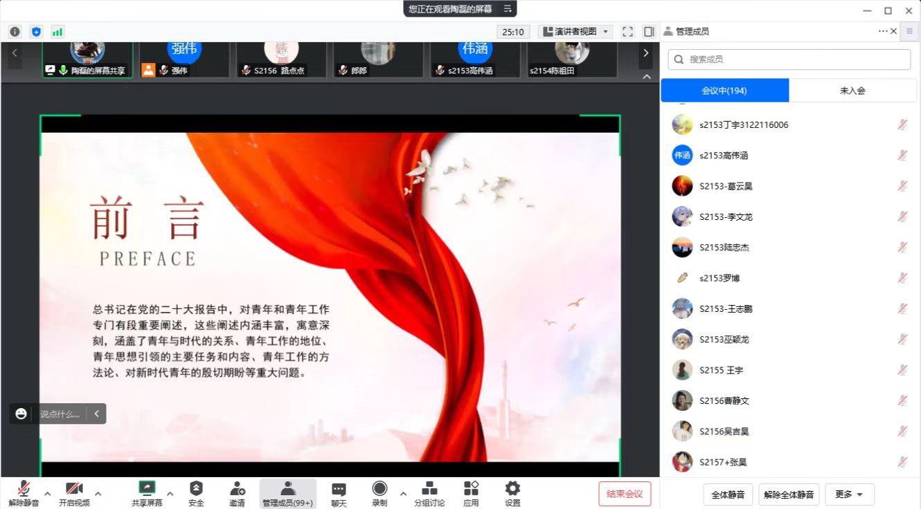 少年负壮气,奋烈自有时。新时代的中国青年生逢中华民族发展的最好时期,与新时代同向同行、砥砺奋斗,生逢盛世、责任在肩。陶磊鼓励全院青年同学在党的领导下以高昂饱满的姿态,奋进新征程,诠释新使命,创造新业绩,努力跨越一个个“雪山”“草地”,征服一个个“娄山关”“腊子口”,为实现第二个百年奋斗目标、实现中华民族伟大复兴的中国梦注入强大青春动力。