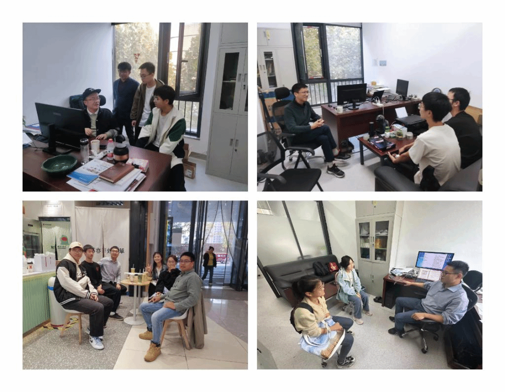 随后,研究生骨干带同学们分别与自己导师深入见面交流。新生们初次和导师深入交流,略显生分,老师们纷纷拿出“破冰”小妙招。伊春海老师亲自给学生现磨咖啡、黄占东老师现身说法讲述自己的求学旅途、涂胜文老师分享自己教学生涯中遇到的风闻趣事,师生交流氛围登时活跃起来。