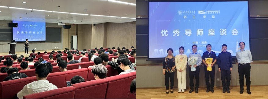 随后,伊春海副院长对2022-2023学年五位优秀本科生导师提出表彰。优秀本科生导师蔡柳溪副教授和吴志强教授分别上台做了分享。蔡柳溪老师以自身的实践经历,阐述了在培养学生思想品德和科研能力方面的重要性,并分享了自己在帮助困难学生和就业指导方面的心得体会。吴志强老师则以身边的化工实例为引子,通过焦油治理的三种方案,生动展示了化工行业的特色与魅力,激发了同学们对化工专业的浓厚兴趣。