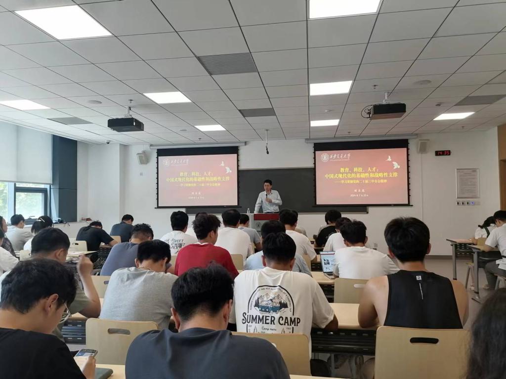 7月25日,必赢76net线路组织中心组扩大学习和党支部书记例会,学习二十届三中全会精神,邀请马克思主义学院刘占虎教授做“教育、科技、人才是中国式现代化的基础性、战略性支撑——学习贯彻党的二十届三中全会精神”主题讲座。院中心组成员、党支部书记、党团干部近80人与会。