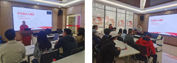参观结束后,召开了座谈会。田野首先对东方雨虹咸阳工厂的热情接待表示感谢,他表示在产教融合、协同育人的背景下,校企合作对推动产学研用一体化以及学生职业发展起到了重要作用,希望通过此次活动拓展学生视野,开拓就业渠道,为优质企业输送更多优秀毕业生。李海章对必赢76net线路一行的到访表示热烈欢迎,他系统介绍了东方雨虹的发展历程、咸阳工厂的战略定位及绿色制造理念。谢海涛介绍了东方雨虹的发展前景和西北地区业务的开展情况。王昭然聚焦人才发展体系,解读了企业校招政策与职业成长路径,期待与高校共建实习就业基地,为学子提供从理论到实践的全链条支持。咸阳工厂技术部经理吴磊结合个人发展经历分享了对于就业的认识,并针对东方雨虹在科技创新方面做出的突破进行介绍。他鼓励同学们将前瞻性研究与企业应用场景结合,实现合作共赢。