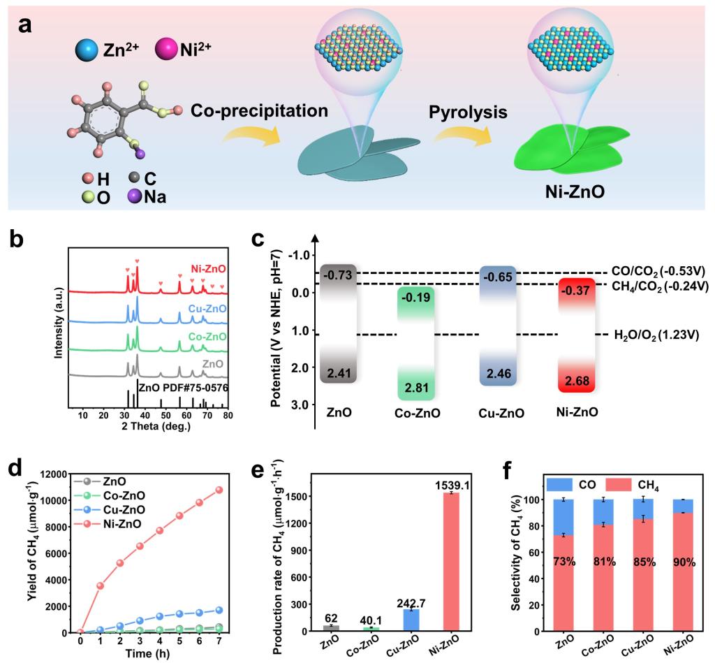 图3 镍掺杂氧化锌高效催化二氧化碳还原为甲烷