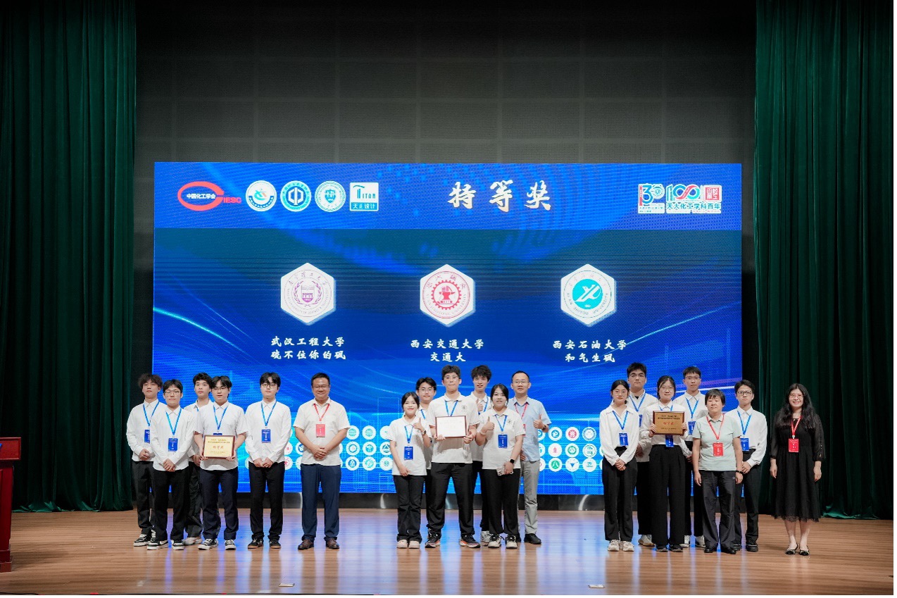 2025年8月11日至17日,由浙江省天正设计工程有限公司冠名赞助、中国化工学会和中国化工教育协会主办、天津大学承办的“天正设计杯”第十九届全国大学生化工设计竞赛全国总决赛在天津大学成功举办。该比赛自3月启动以来,全国共有479所高校的4337支队伍报名参加本届赛事,参赛人数超2万人。国内赛道经过各个赛区选拔赛的激烈角逐,最终共73支队伍进入全国总决赛。必赢76net线路的“交通大”队(队长:王博文、队员:罗富文、张晶晶、范瀚鸿、刘晓)在杨敏博、黄哲庆、康丽霞和张桥四位老师的悉心指导下荣获全国总决赛特等奖、西北赛区决赛特等奖和陕西省决赛特等奖。这是我院自参加该赛事以来的首个国家级特等奖。