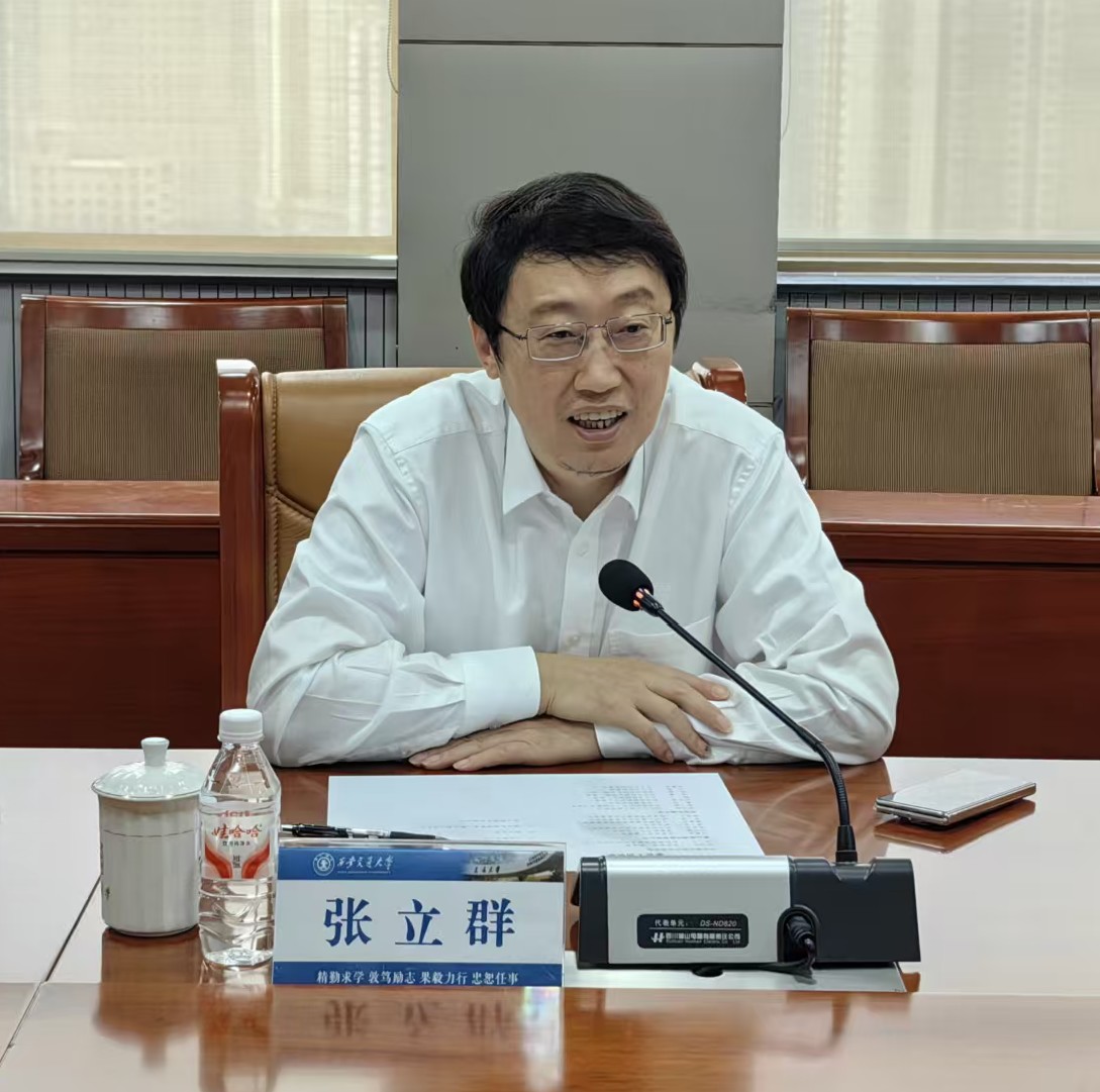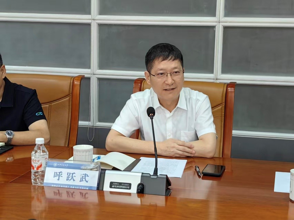 张立群对薛忠民、呼跃武一行的到来表示欢迎。他介绍了学校西迁历史、学科特色、科研优势以及服务国家重大战略和区域经济社会发展的举措与成效。张立群表示,中国建材是我国建材行业的龙头企业,泰山玻纤作为中国建材的全资子公司,又是玻纤行业的技术引领者,在关键技术突破和产业转型升级方面发挥着重要引领示范作用。希望以此次交流为契机,深化合作,共建联合创新平台、协同攻关关键核心技术,实现校企共同出题、共同答题、共同育人、共同受益,共同推动教育、科技、人才与产业的协同发展,打造绿色新质生产力,共同谱写新时代材料行业高质量发展新篇章。