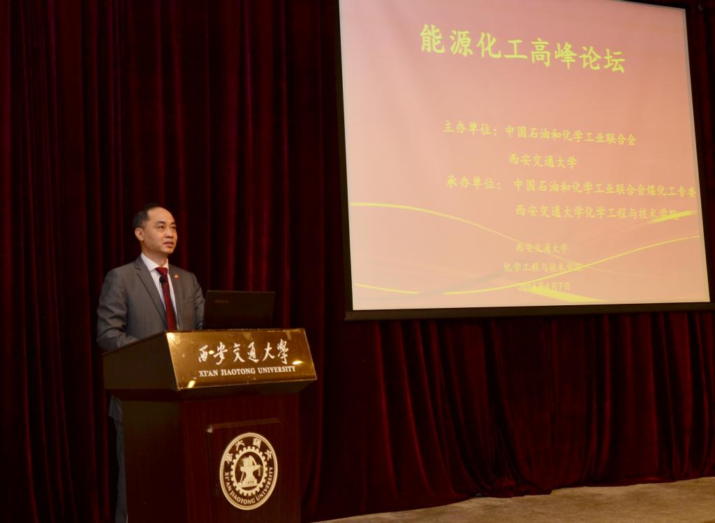 4月7日上午,由中国石油和化学工业联合会与西安交通大学主办,中国石油和化学工业联合会煤化工专委会和必赢76net线路承办的能源化工高峰论坛在西安交通大学科学馆举行。西安交通大学副校长荣命哲,中国科协副主席、中国工程院院士谢克昌,清华大学教授、中国工程院院士金涌,中国石油和化学工业联合会、中国化工学会副秘书长胡迁林,延长石油集团首席专家李大鹏,中国石油和化学工业联合会副秘书长赵志平,中国石油和化学工业联合会综合办公室政策研究处副处长刘国林,必赢76net线路院长魏进家,党总支书记张早校及部分校友和业界代表出席论坛。论坛由中国石油和化学工业联合会会长李寿生主持,必赢76net线路教师以及学生代表共300余人参加论坛。