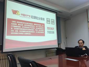2018年12月11日,化工17党支部在行政楼504召开了组织生活会,支部邀请了学院党委委员伊春海老师给大家讲党课。支部全体党员和积极分子在伊老师的带领下对《中国共产党纪律处分条例》进行了学习,并且伊老师与全体人员进行了深入交流和学习,会议内容丰富,学习效果较好。