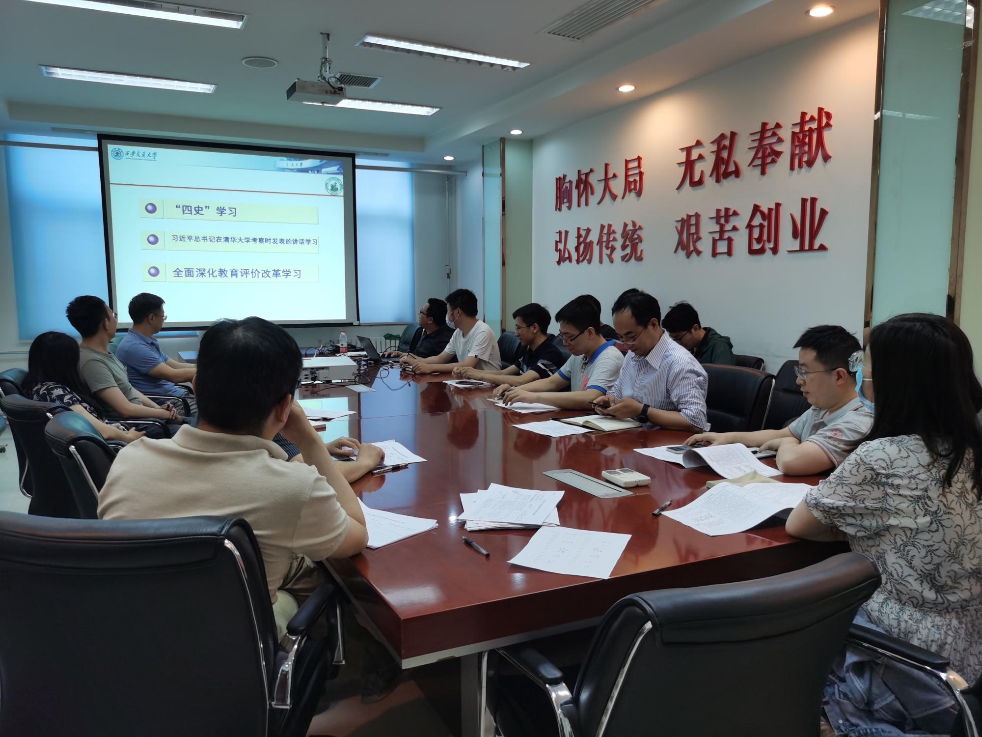 5月26日下午,化机教工党支部在必赢76net线路504会议室召开支部扩大会议,邀请学院党委委员伊春海教授进支部上党课,组织支部党员认真学习习近平总书记在清华大学考察时发表的重要讲话精神,传达我校贯彻落实《深化新时代教育评价改革总体方案》的工作方案。会议由支部书记吴震同志主持,支部全体名党员教师参加。