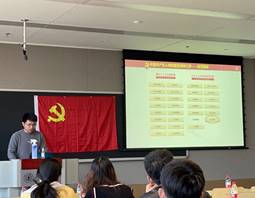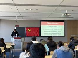 支部大会首先讨论接收康皓哲、贺姝玥、任晓玲等三位同志为预备党员的相关事宜,首先,余希阳同志介绍接收预备党员流程,三位发展对象依次向党支部同志汇报考察期间工作、生活、思想等方面情况,其各自的入党介绍人向党支部同志介绍考察期内三位发展对象的表现情况。支部党员对是否接收两位发展对象正式党员进行了讨论、表决。最后,全体一致通过接收三位发展对象为预备党员,余希阳同志领誓,康皓哲、贺姝玥、任晓玲等三位同志面对党旗进行庄严宣誓,成为光荣的预备党员。
