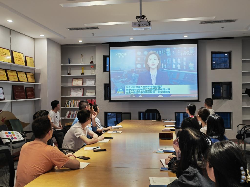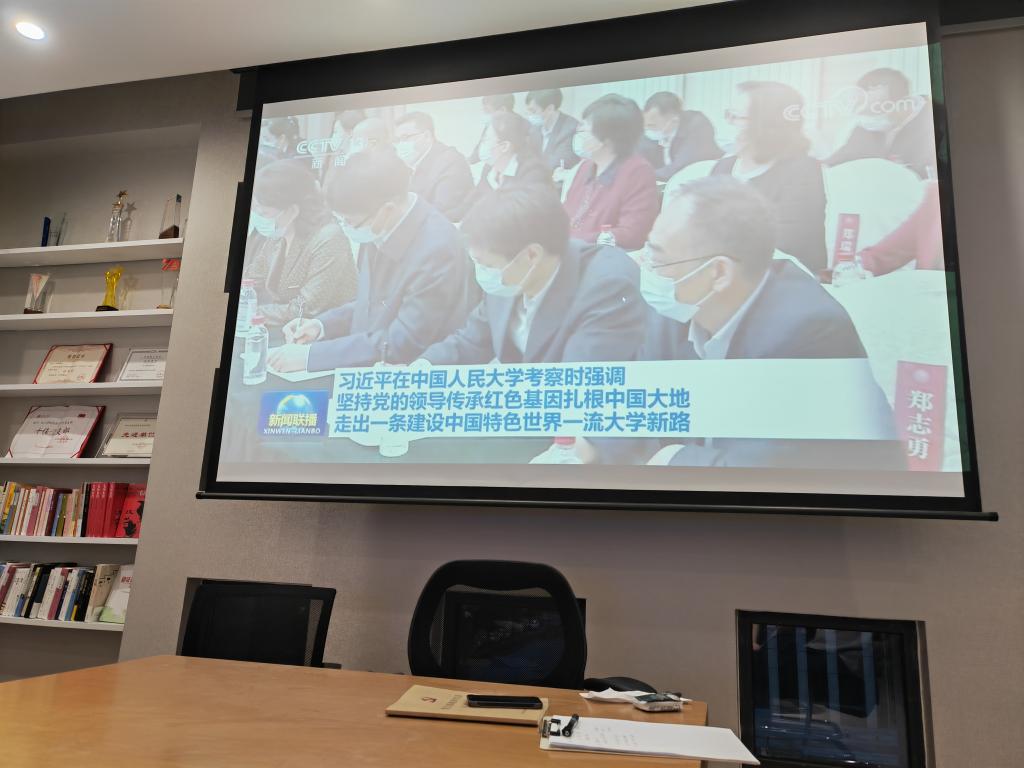 本次党日活动由党支部书记进行PPT介绍、集体观看新闻报道视频以及交流探讨环节等内容组成,深学细悟习近平总书记在中国人民大学考察的重要讲话精神。