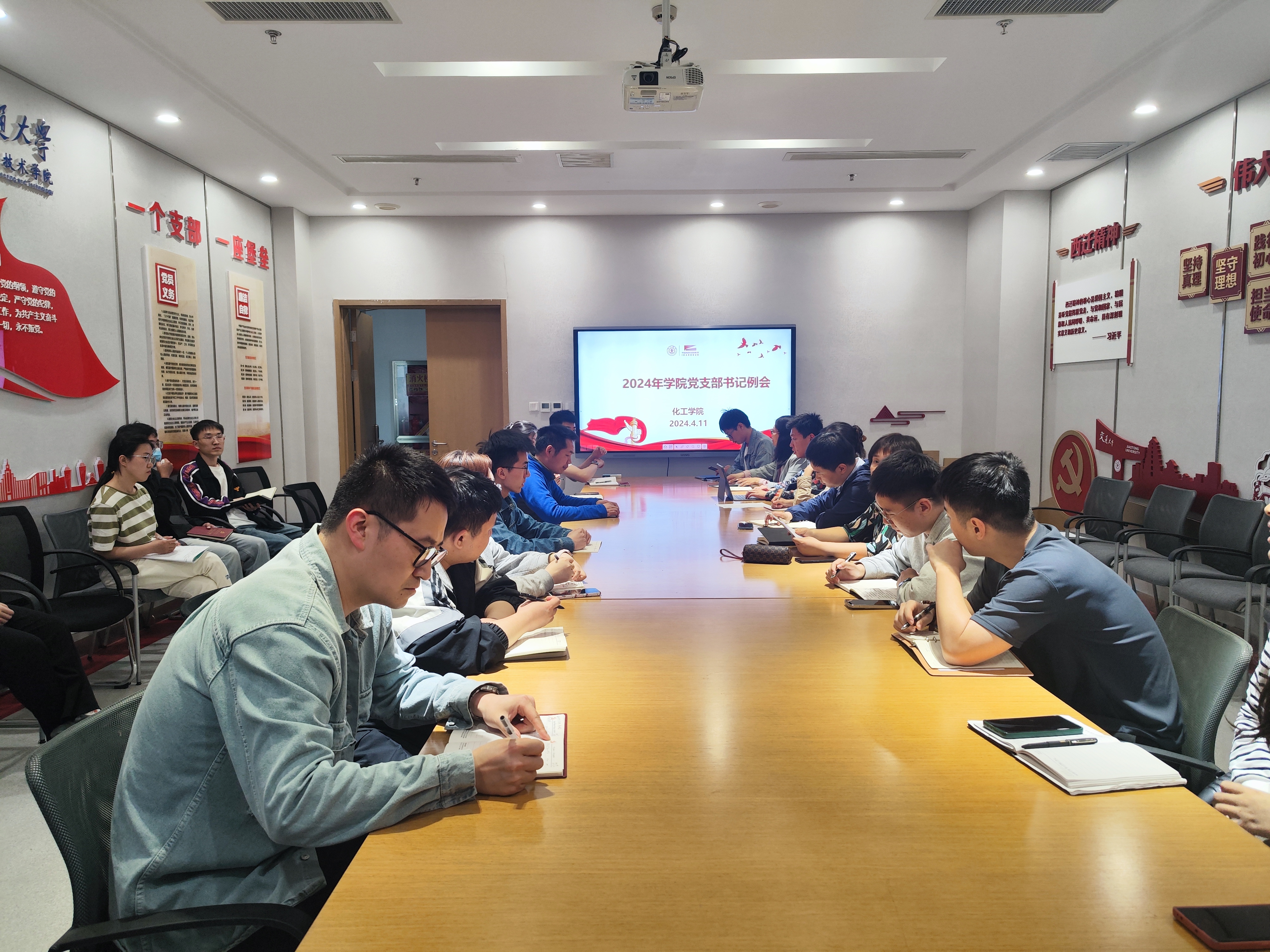 陶磊对2024年学院党员发展工作进行了安排,对发展对象考察内容进行了解读,接着面向全体学生党支部书记开展“弘扬西迁精神 回顾总书记来校考察讲话”主题党课。通过重温“西迁精神”和习近平总书记来校讲话,进一步加深全体学生党支部书记对学校历史及“西迁精神”内涵的认识,引导全体党支部书记发挥先锋模范作用,牢记习近平总书记讲话精神,以身作则,带领党支部党员争先创优,努力争做西迁新传人。
