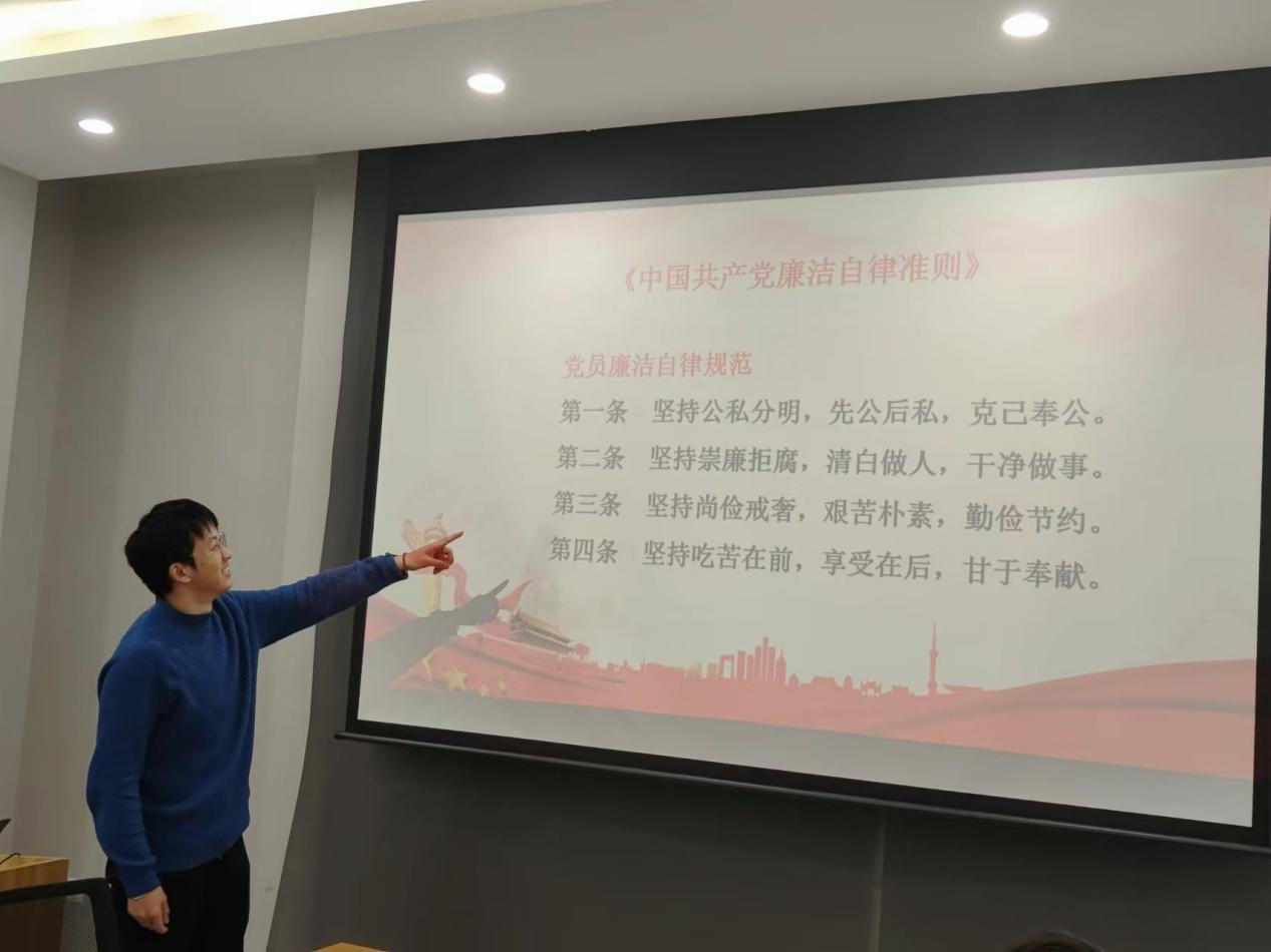 党课最后,李栋宇总结了全面从严治党的实践要求,强调支部将以此次学习为契机,持续深化纪律教育:一是定期开展廉洁主题组织生活,二是建立党员日常行为监督机制,三是推动理论学习与科研实践深度融合。他呼吁全体党员以“严”字当头,将廉洁自律准则内化于心、外化于行,共同营造风清气正的支部氛围。