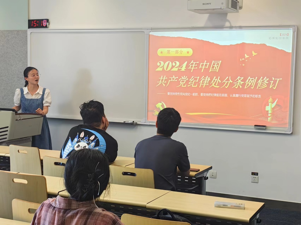 刘倩如以学习2024年新修订的《中国共产党纪律处分条例》为主题进行了分享。她利用动漫展示等新颖形式介绍了《条例》修订的历史沿革、背景、总体要求和重要意义,并进行亮点解读。