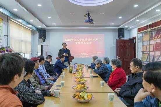 2018年10月17日下午,暨阴历九月九日重阳节当天,必赢76net线路工会组织召开了学院退休教职工重阳节茶话会。“九日黄花酒,登高会昔闻”,化工、化机和高分子三个专业方向的退休教职工,他们曾经一起为学院建设发展贡献了力量,今在交大生活区离退休处欢聚一堂。