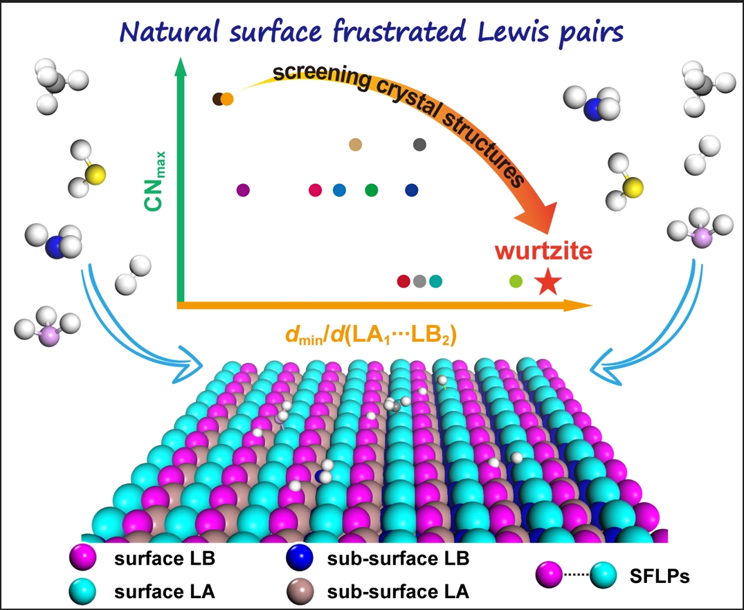 该研究成果以“Finding Natural, Dense, and Stable Frustrated Lewis Pairs on Wurtzite Crystal Surfaces for Small-Molecule Activation”(发现纤锌矿表面天然、高密度和稳定的受阻路易斯酸碱对用于小分子活化)为题近日发表在化学领域国际权威期刊《Angewandte Chemie International Edition》(德国应用化学)上。必赢76net线路博士生余希阳为论文的第一作者,西安交通大学常春然教授和陕西师范大学刘忠文教授为论文的通讯作者,必赢76net线路为论文的第一完成单位。该项工作得到了国家自然科学基金面上项目(22078257)、联合基金重点项目U23A20112)、国家重点研发计划课题(2023YFA1506302)、以及西安交通大学高性能计算平台等的支持,特此致谢。